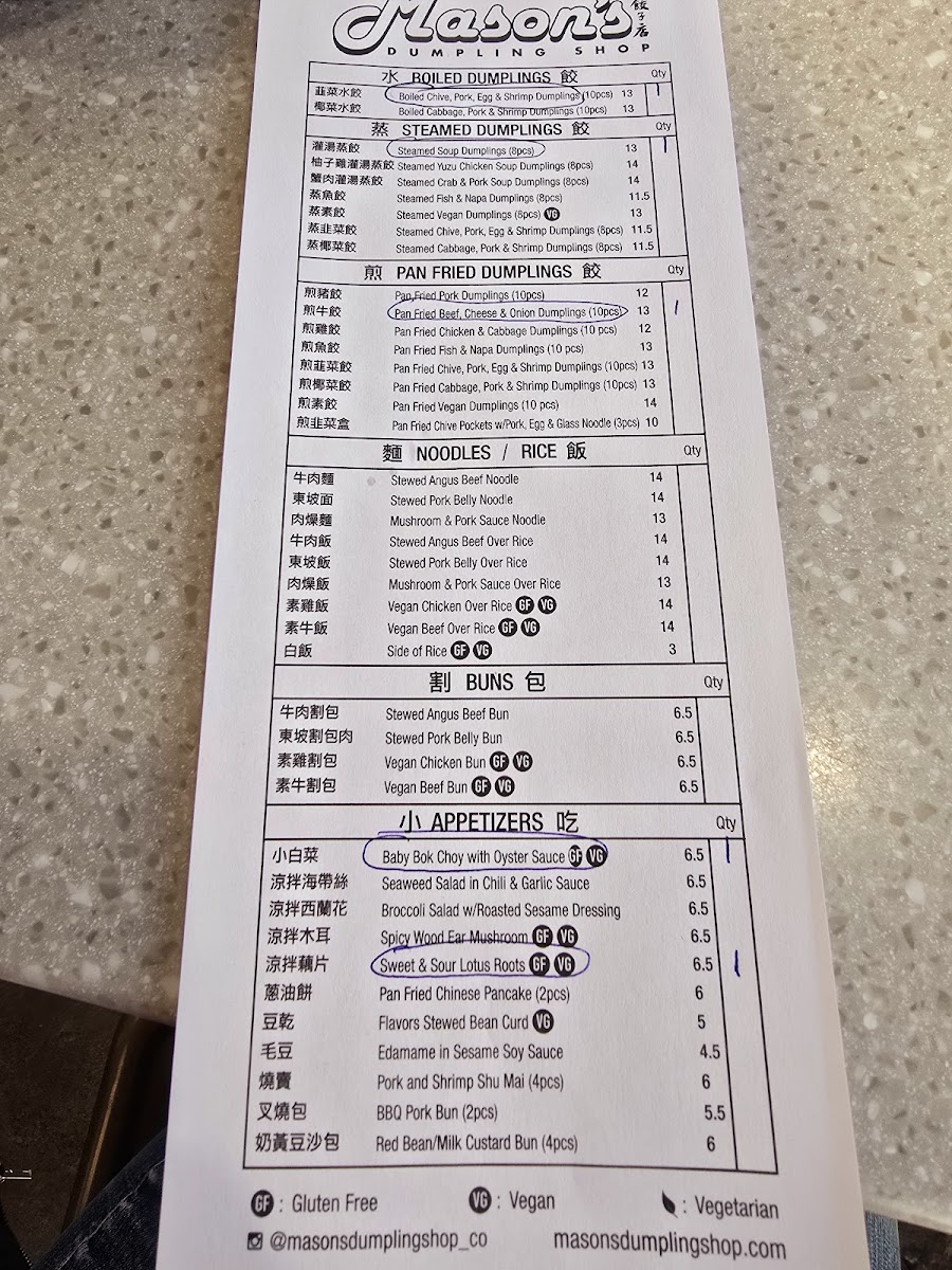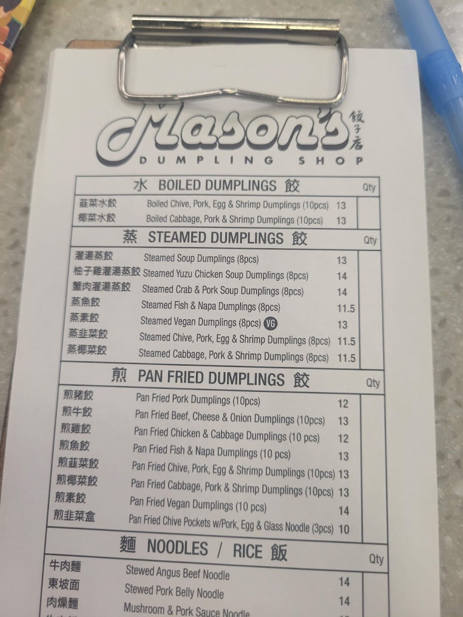 Mason's Dumpling Shop - Aurora Menu